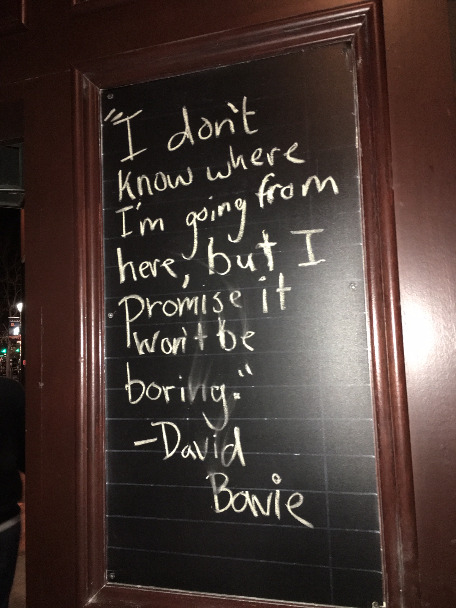 The morning to leave LA is early, the goodbyes are tearful and off we go. Our first day of driving concludes at the 14-hour mark and day two was significantly shorter since we drove further than expected on day one and was only about five hours. We arrive in Denver, check into our Airbnb and here we go! On the wall of our first restaurant is a David Bowie quote,